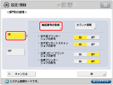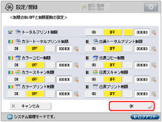コピー/プリント以外で部門別ID管理の対象とするファンクションの[ON]を押す