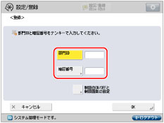 (クリア)を押すと、入力した数字を取り消すことができます。 暗証番号を登録しない場合は、部門IDを入力しただけで、本製品が使えるようになります。 |