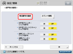 [管理設定]→[ユーザー管理]→[部門別ID管理]を押す