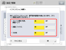 コピー/プリント機能のみ対象とするときは、すべてのファンクションの[OFF]を押します。