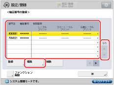 でリストをスクロール→暗証番号を変更する部門を選択→[編集]を押す