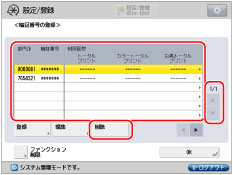 を長押しすると、ページ番号が増減し、キーを離した時点のページが表示されます。部門IDが大量に登録されている場合に、すばやく目的の部門IDを表示させることができます。 |