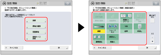 ファクス画面に表示するショートカットを登録します。[その他の機能]から、任意のボタンを4個まで登録できます。