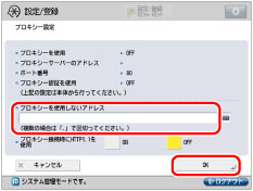 セキュリティー上、プロキシーを使用する必要のないアドレスを指定できます。本体側で設定したプロキシーを確認できます。