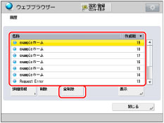 ウェブページによっては名称が空白になる場合があります。 画像のみを表示した場合は、名称は空白になります。 履歴の一覧表示は[名称]や[作成順]を押して、昇降順を並びかえることができます。 |