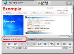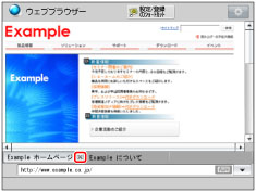 [ホームページの設定]で[起動時にホームページを表示]を「ON」に設定していると、[ウェブブラウザー]を押したときに指定したウェブページを表示できます。ホームページを指定する方法は、「ホームページの設定をする」を参照してください。 「ウィンドウを閉じる」ボタンは、ウィンドウが1つしか表示されていない場合、無効表示となり選択することができません。 タイトルが存在しないURLを表示した場合、タブには「No title」と表示されます。 ウェブブラウザーの仕様設定は、管理者権限が必要です。「使いかたにあわせた設定をする(仕様設定)」を参照してください。 |