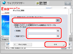 Adobe Acrobat上の設定で印刷を許可されていないPDFファイルは、ボックスに保存することはできません。 PDFファイルに文書パスワードが設定されていない場合は、文書パスワードを入力する必要はありません。 パスワード付きのPDFファイルは、ボックスに保存後、パスワードなしの文書となります。パスワード付きPDFを送信するには再度パスワードを設定してください。 選択したボックスに暗証番号が設定されている場合は暗証番号入力画面が表示されます。 保存されたかどうかを確認するためには、保存先として選択したボックス内を参照してください。 文書パスワードを入力する場合は、正しいパスワードを入力してください。誤ったパスワードを入力すると、ボックスに保存されません。 PDFファイルをボックスに保存する際に設定したボックス番号、文書名、文書パスワードは、新しいPDFファイルを開くとクリアされます。ただし、[更新]ボタンを押して現在表示しているページを更新した場合には、これらの設定はクリアされません。 |