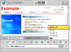 現在表示しているウェブページ内の文字サイズや文字コードを変更できます。