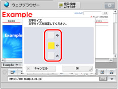 選択することのできる文字サイズには、小・中・大の3段階があります。工場出荷時の文字サイズは、「中」に設定されています。 閲覧するウェブページによっては、文字のサイズを変更しても反映されないことがあります。 |