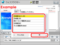 ウェブページ内の文章が文字化けしている場合は、適切な文字コードに変更することによって、正しく表示できます。 |