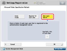 In this procedure, select [Use Login Server] to specify the personal folder.