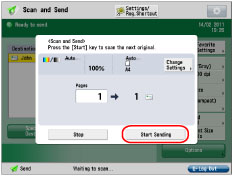 The send settings for the last send job may be retained. To cancel the settings, press .The specified destinations are not retained. |