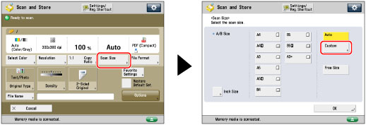 Press [Scan Size] → [Custom].