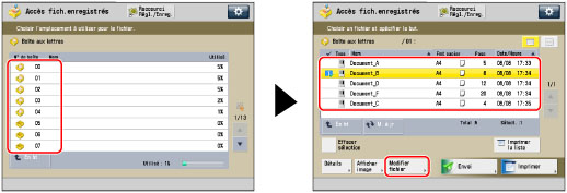 → [Accès fich. enregistrés] → [Boîte aux lettres].