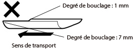 Pour les papiers épais et de petit format tels que les cartes postales, la différence entre le degré de bouclage intérieur et extérieur doit être ramenée à moins de 5 mm en plus des conditions présentées ci-dessous. |