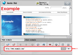 Pour plus d'informations sur la saisie de caractères, voir "Saisie de caractères sur l'afficheur tactile". Selon le type de zone de saisie de la page Web, le champ de texte associé au clavier peut s'afficher avec plusieurs lignes de saisie. Selon la taille de la page Web ou des images, la page Web risque de ne pas s'afficher correctement ou un message d'erreur peut apparaître. Suivant la taille de l'image, les animations GIF peuvent mettre un certain temps à se charger. Si plusieurs fenêtres sont ouvertes, elles ne sont pas différenciées et les URL sont enregistrées dans leur ordre de saisie. |