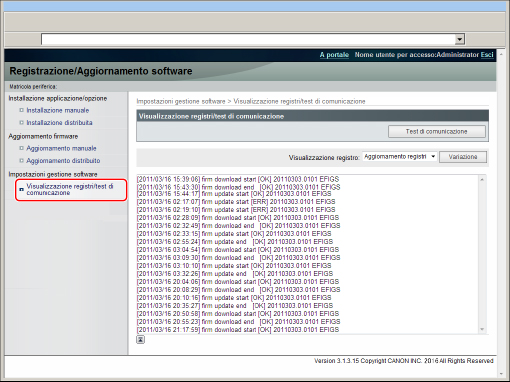 Premere [Impostazioni gestione software] → [Selezione visualizzazione registro] → [Visualizzaz. registri aggiornam.].