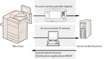 Per espandere le funzioni della macchina senza utilizzare le opzioni di sistema, installare le applicazioni MEAP nella macchina.