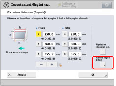 [c]: | Immettere la lunghezza misurata dal bordo di testa sinistro dell'area di stampa al bordo di testa destro dell'area di stampa. |