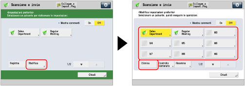 Premere [Modifica] → selezionare il pulsante da eliminare → premere [Elimina].