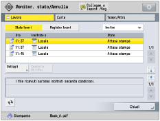 Se [Gestione ID divisione] o [Limite funzioni] per [Gestione ID divisione] è impostato su 'On', la schermata di avvio potrebbe differire dalla schermata impostata per essere visualizzata come predefinita all'avvio. Se [Gestione ID divisione] è impostato su 'On' e se per la schermata predefinita è impostata una funzione limitata mediante Limite funzioni, all'avvio viene visualizzata la schermata Menu principale. (Se [Gestione ID divisione] è impostato su 'On', [Copia] viene limitata mediante Limite funzioni). Per visualizzare la funzione impostata per la schermata di avvio predefinita, selezionare la funzione nella schermata Menu principale → digitare ID divisione/PIN nella schermata Collegamento. Se tutte le funzioni in [Limite funzioni] per [Gestione ID divisione] sono impostate su 'On', anche se si imposta 'On' per [Apri Monitor. stato/Annulla], la schermata Collegamento viene visualizzata all'avvio. Se si preme , viene visualizzata la schermata Monitoraggio stato/Annulla. (Se si desidera visualizzare la schermata Monitoraggio stato/Annulla, non è necessario un ID divisione/PIN).Per maggiori informazioni sulla Gestione ID divisione, vedere "Specifica della Gestione ID divisione". Se si utilizza SSO-H (Single Sign-On H), indipendentemente dalle impostazioni della [Schermata predefinita dopo avvio/ripristino], la schermata Collegamento viene visualizzata all'avvio. Se si preme , viene visualizzata la schermata Monitoraggio stato/Annulla. (Se si desidera visualizzare la schermata Monitoraggio stato/Annulla, non è necessario un nome utente/password). Per ulteriori informazioni su SSO-H, vedere "SSO-H (Single Sign-On H)". |