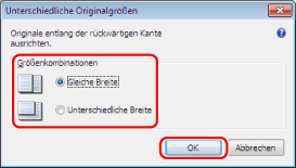 Wählen Sie zum Scannen von Papiergrößen wie A3 und A4, bei denen die Länge der kleineren Vorlage und die Breite der größeren Vorlage identisch sind, die Option [Gleiche Breite].