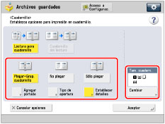 Seleccione el tamaño de cuadernillo que desee → pulse [Aceptar].