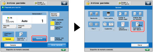 Pulse [Opciones] → [Contraseña abrir docum.].