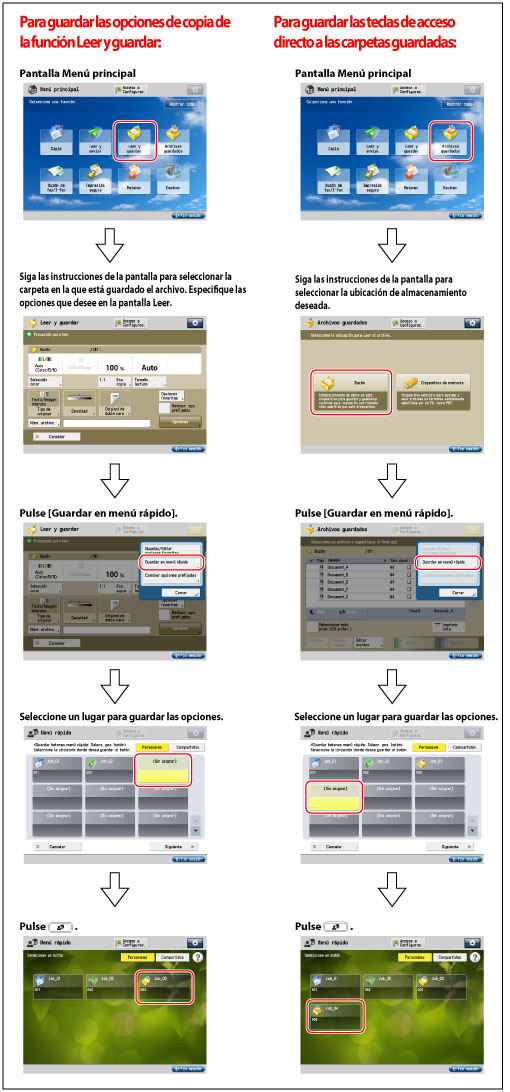 (Consulte "Leer y guardar".)A continuación se indican los pasos para guardar opciones en los botones personales y los botones compartidos.