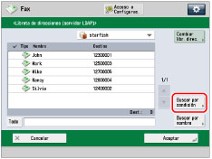 Si pulsa [Iniciar búsqueda] sin especificar ningún criterio de búsqueda, aparecen todas las direcciones guardadas en el servidor LDAP. |