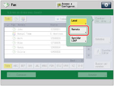 [Cambiar libr. direc.] sólo aparece si guarda tanto la libreta de direcciones remota como el servidor LDAP. Si sólo guarda la libreta de direcciones remota en el equipo, aparece [Libr. direc. remota]. |
