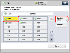 Los destinos guardados en teclas de acceso rápido también aparecen en la libreta de direcciones local. |
