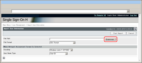 [SDL Format] | Se importan los datos de usuario creados en el formato de archivo utilizado para SDL y Local Device Authentication de SSO-H. (Extensión de archivo: "ldif") |