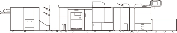 Las unidades Cizalla de Cuadernillos de Doble Hoja A, Cizalla de Cuadernillos F, Unidad de Acabado de Cuadernillos W PRO, Unidad Plegadora de Papel J, Apilador de Alta Capacidad H, Encuadernadora Perfect Binder-E, Taladradora MultiFuncional Profesional B, Unidad de Inserción N, Unidad Lectora Color Dúplex M, Panel de Control Vertical G y Depósito POD Sencillo XL A están instaladas.