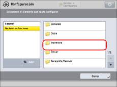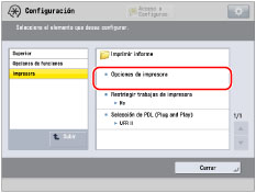 Pulse [Opciones de funciones] → [Impresora] → [Opciones de impresora].