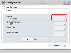 Como ejemplo, en las siguientes páginas aparece la secuencia de pasos para configurar el número de copias predeterminado.