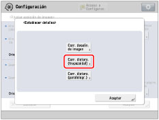 Pulse [Establecer detalles] → [Corr. distors. (trapezoidal)].