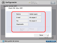 Pulse [Establecer destino] → [Guardar/Editar condiciones búsqueda LDAP].