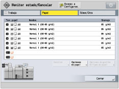 Si establece [Papel] como Pantalla prefijada (Monitor estado/Cancelar):