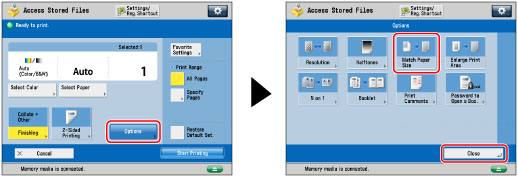 Press [Options] → [Match Paper Size] → [Close].