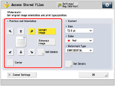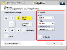 To specify detailed watermark settings, press [Set Details].