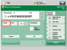 The location of a pause and the actual pause time may differ depending on the telephone system. Contact your local authorized Canon dealer or your local telephone company for further details. |