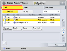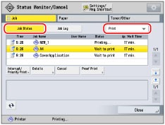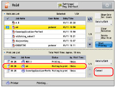 Select the job that you want to cancel from the Print Job List → press [Cancel].