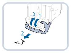 2. Pull the lever on the two staple cartridges toward you to remove them. |