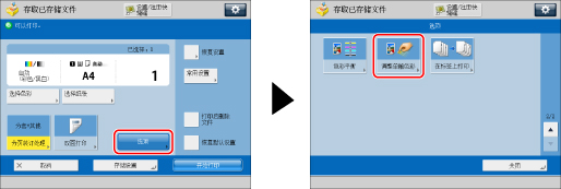 “调整单触色彩”模式设置实际上是预置色彩平衡设置。因此,如果更改“调整单触色彩”模式设置,所做的任何色彩平衡设置都随之更改。 不能为来自计算机并存入存储箱的文件设置“深褐色调”模式。如果设置“深褐色调”模式后按[开始打印],屏幕上会显示一条信息,提示重新设置。 打印存储在存储箱中的CMYK格式的文件时无法指定“调整单触色彩”模式设置。 |