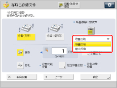 只有为<堆叠器输出接收方>选择了[堆叠区域],才可以设置[指定堆叠份数]。 |