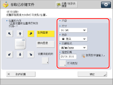 包含分辨率低于600×600 dpi的图像的文件不能使用“日期打印”模式。 也可以调整日期的位置。(请参阅“注册/编辑/删除页码和水印的用户定义文本”) |