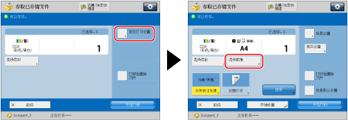 最多可以指定预约六个作业,包括当前作业。如果一次选择七个或更多要打印的文件,将显示确认屏幕。插印打印作业不包括在此计数中。 可以为每项预约作业设置不同的打印模式和供纸器(包括“旁路堆栈供纸器-C”)。 如果将“设备使用设置”中的[多功能托盘默认值]设置为“打开”,只能对已注册的纸张尺寸和类型执行预约打印。(请参阅“注册多功能托盘默认值”) 有关纸张类型的详细信息,请参阅“可用的纸张材料”。 如果本机存储器已满,则无法预约打印作业。 |