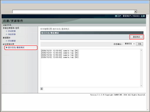 从“远程用户界面”的门户页面,单击[设置/注册]→[授权/其他]→[注册/更新软件]。