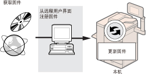 可以使用“远程用户界面”的“注册/更新软件”功能将本机的固件更新到最新的版本。
